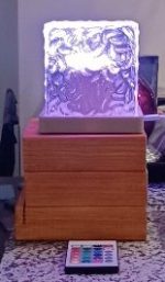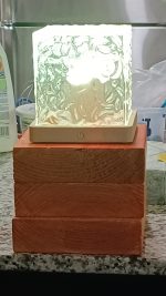 The laminated lightning picture goes in the slit on the front of the wooden pine base.